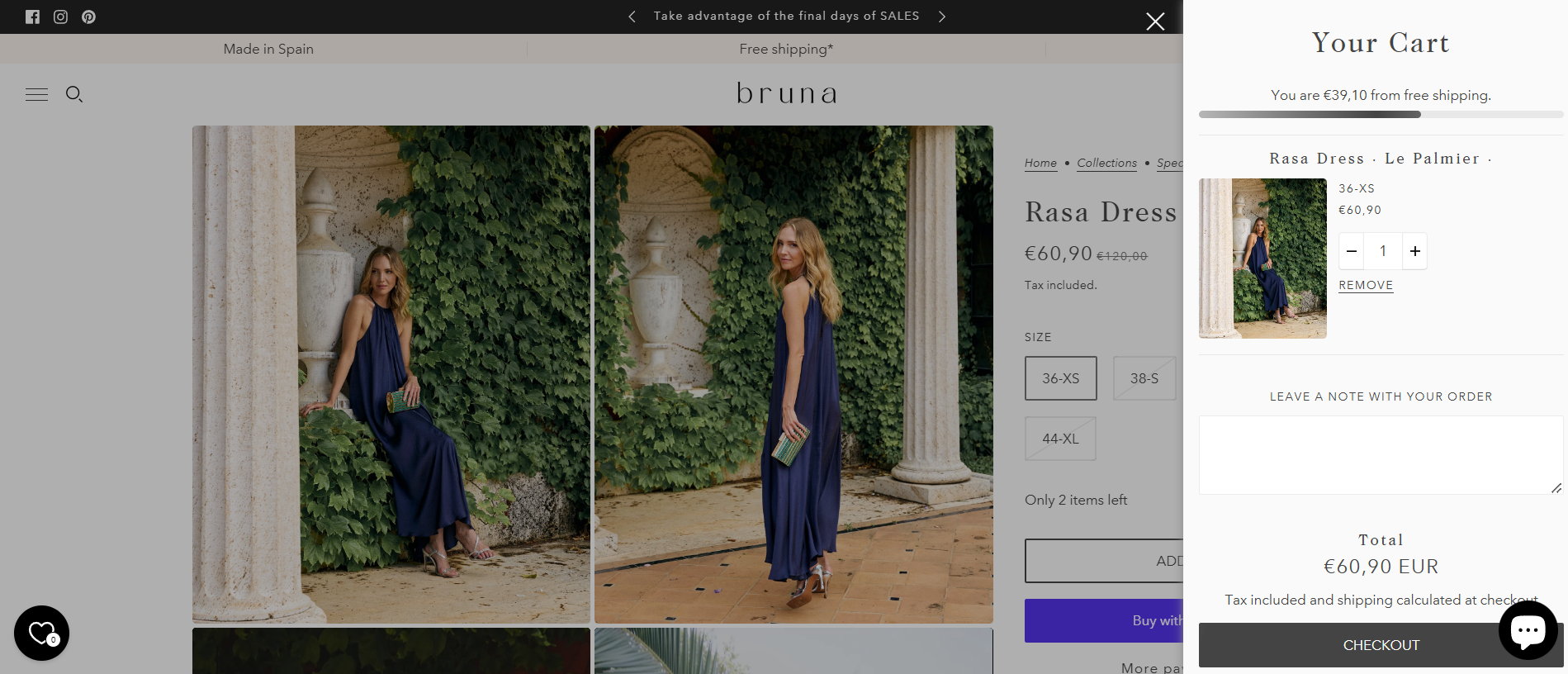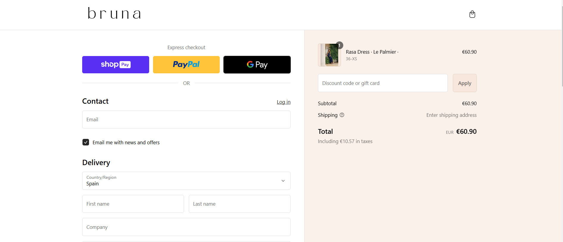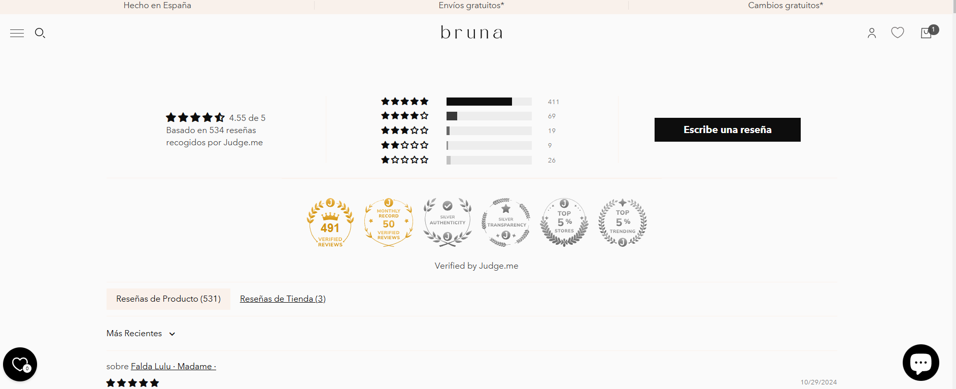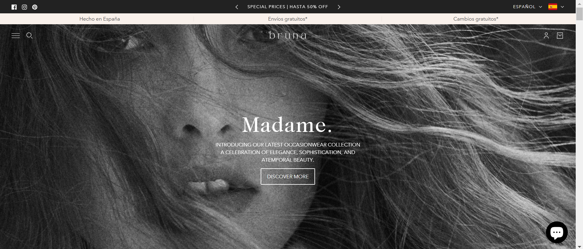 Con una interfaz elegante y funcional, la página web de Bruna ofrece una experiencia de compra fluida, accesible y en armonía con los principios de moda consciente.
