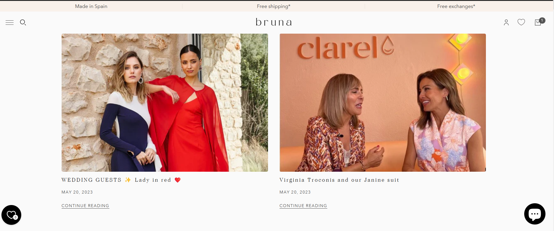 La página también cuenta con un Blog donde se destacan temas relacionados con la moda ética, consejos de estilo y la importancia de las prácticas sostenibles en la industria de la moda. Esta sección invita a los clientes a conocer más sobre los valores de Bruna y a formar parte de una comunidad comprometida con un futuro más consciente y sostenible.
