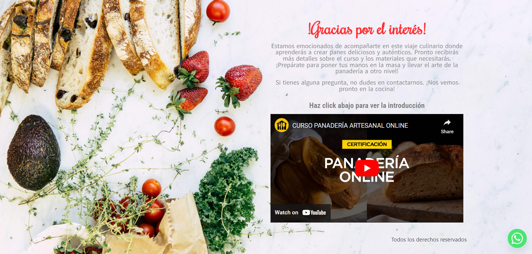 El resultado es una página web efectiva para captar alumnos interesados en aprender panadería artesanal, con herramientas que facilitan la gestión de contactos y la conversión de leads, asegurando que Valeria pueda cerrar ventas de manera eficiente a través de WhatsApp.