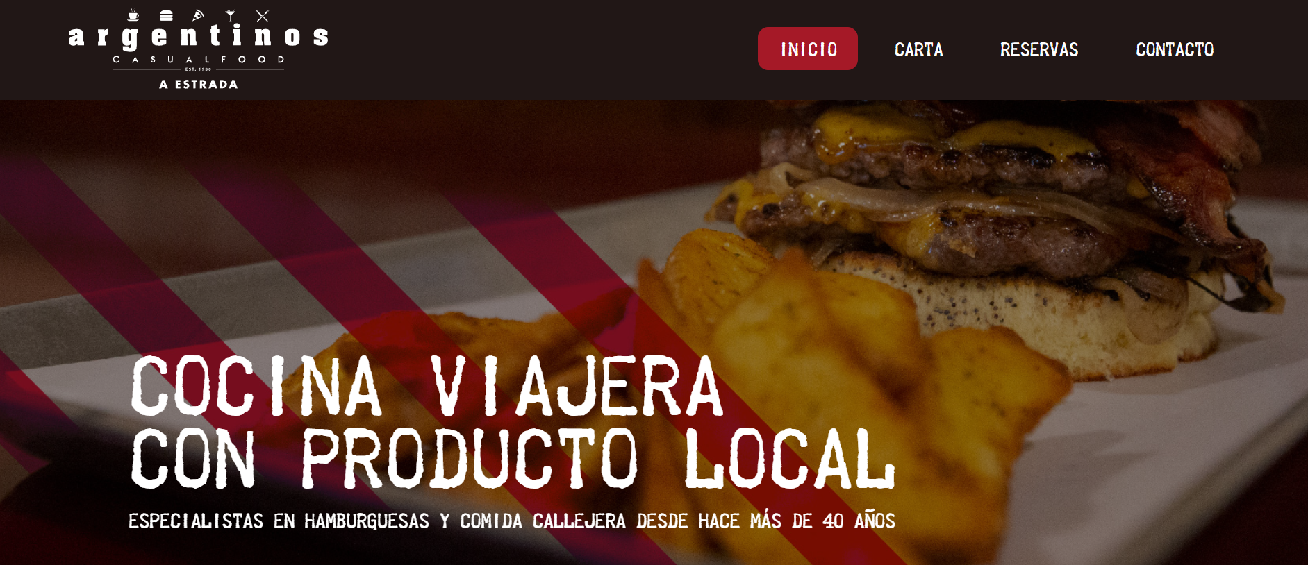 La página web invita a los amantes de las hamburguesas a descubrir una experiencia única, donde el sabor y la frescura de los ingredientes locales se fusionan con la creatividad de una cocina inspirada en viajes gastronómicos. Desde el momento en que los visitantes ingresan, una imagen llamativa de una hamburguesa jugosa acompañada de crujientes patatas captura su atención, acompañada de la frase “Cocina Viajera con Producto Local”, que refleja el compromiso del restaurante con la calidad y la autenticidad en cada plato.