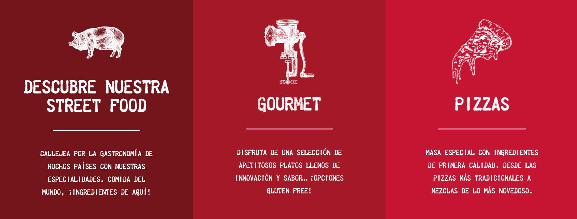 El Menú de Navegación ofrece una experiencia de usuario ágil y directa, guiando a los visitantes por las diferentes secciones de la página. En la carta se presentan las especialidades de la casa, resaltando la variedad y creatividad de las combinaciones.