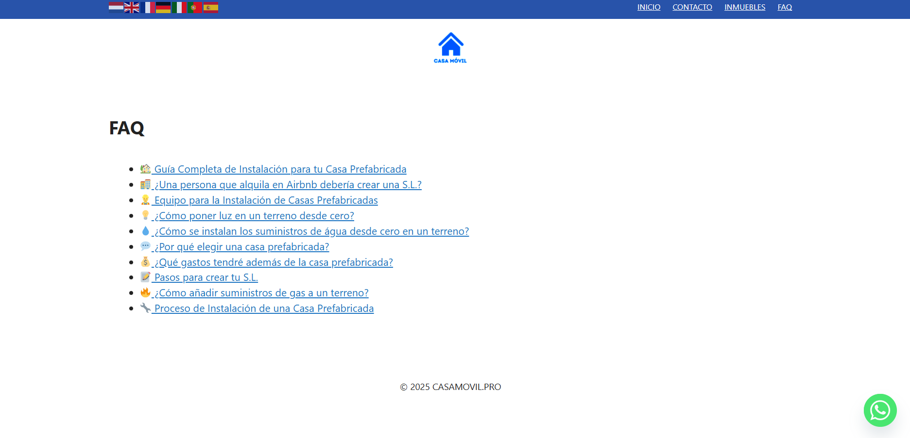 El resultado fue una web totalmente responsive, con un diseño limpio y profesional que transmite confianza, sostenibilidad y modernidad. CasaMóvil Pro no solo muestra viviendas, sino que invita a imaginar una nueva forma de vivir — y mi trabajo fue transformar esa visión en una experiencia digital completa.
